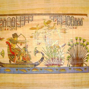 La palabra papiro proviene del término griego πάπυρος papiros, que en latín es papyrus (el plural es papyri). Está tomada del antiguo término egipcio per-peraâ, que significa flor del rey, pues su elaboración era monopolio real. También es el origen de la palabra papel. Fue profusamente empleado para la fabricación de diversos objetos de uso cotidiano, siendo su principal utilización la elaboración del soporte de los manuscritos de la antigüedad denominado papiro, precedente del moderno papel. El fragmento más antiguo de papiro se descubrió en la tumba de Hemaka.